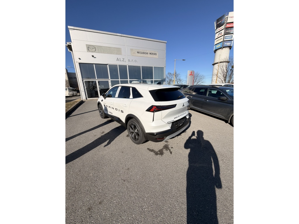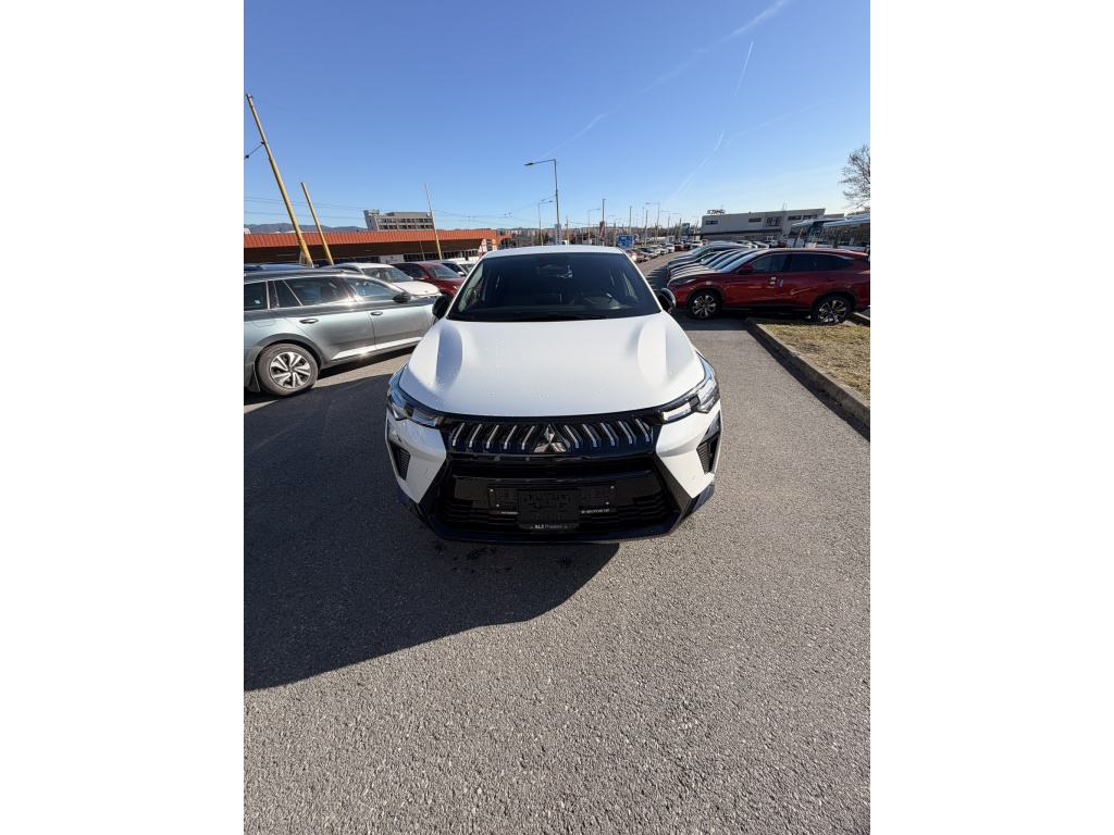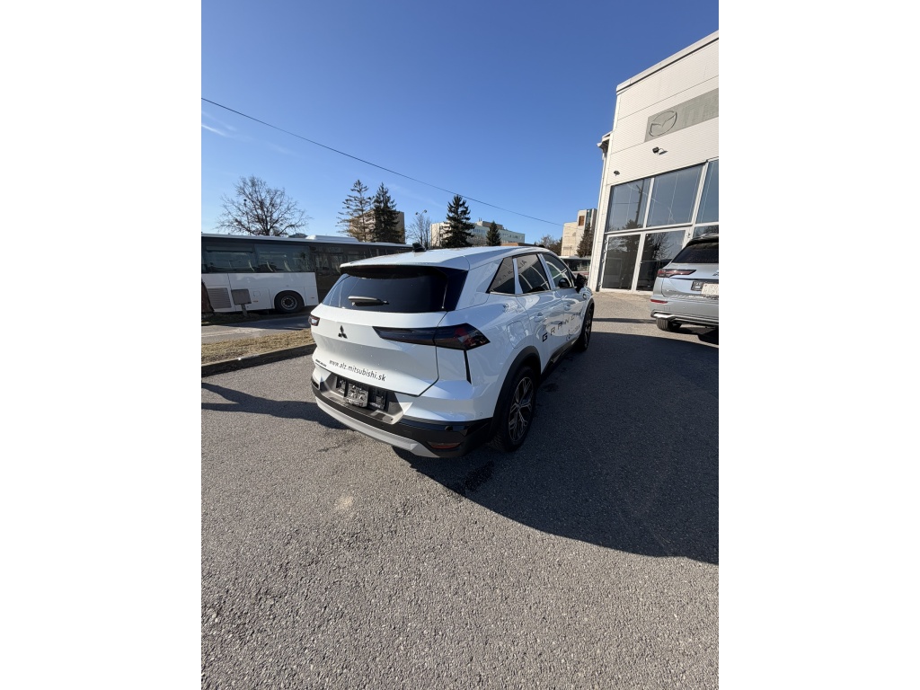 6 repreduktorov, Plne digitálny prístrojový panel so 7" TFT displejom, Bezdrôtové nabíjanie mobilného telefónu, Dátový a nabíjací vstup USB-C na prednom paneli (x2), Ovládanie audiosystému pod volantom, Audiosystém 10,4", podpora bezdrôtového Android Auto™ a CarPlay®, Bluetooth®, autorádio AM/FM/DAB (SDA), Automatické aktualizácie multimediálneho systému, Tlačidlo pre núdzové privolanie pomoci (E-Call), Nabíjací vstup USB-C v zadnej časti stredovej konzoly (x2), Prepojenie s vozidlom a ovládanie vybraných funkcií pomocou mobilnej aplikácie Mitsubishi Motors, 3-bodový bezpečnostný pás na predných sedadlách s predpínačom a obmedzovačom záťaže (x2), Lepiaca sada na opravu pneumatík, Systém pre analýzu pozornosti vodiča, 3-bodový bezpečnostný pás na zadných sedadlách (x3) s predpínačom a obmedzovačom záťaže (x2), Systém sledovania dopravnej situácie za vozidlom pri cúvaní (RCTA), Systém signalizácie núdzového brzdenia (ESS), Systém predchádzania a zmierňovania následkov čelného nárazu s detekciou chodcov a cyklistov (FCM), Systém sledovania mŕtveho uhla (BSW), Systém kontroly tlaku v pneumatikách (TPMS), Antiblokovací brzdový systém (ABS), Detská poistka zámkov zadných dverí, Multikolizná brzda, Výškovo nastaviteľné horné úchyty bezpečnostných pásov predných sedadiel (x2), Elektronický systém rozdelenia brzdného účinku (EBD), Elektronický imobilizér, Systém aktívneho riadenia stability (ASC), Hlavové (okenné) airbagy vpredu (x2), Upozornenie na dodržiavanie bezpečného odstupu, Asistent pre bezpečné opustenie vozidla, Systém elektronického riadenia trakcie (TCL), Možnosť uloženia vlastného nastavenia bezpečnostných asistentov (My Safety Perso), Systém rozpoznávania dopravných značiek upravujúcich rýchlosť (TSR) s inteligentným asistentom pre dodržanie povolenej rýchlosti, Čelné airbagy vodiča a spolujazdca (x2), spínač deaktivácie airbagu spolujazdca, Asistent rozjazdu do kopca (HSA), Systém monitorovania a podpory udržiavania jazdného pruhu (LDW), Núdzový brzdový asistent (EBA), Spodný kryt predného nárazníka lesklo čierny, Predný a zadný nárazník vo farbe karosérie, Disky kolies z ľahkých zliatin 19" čiernostrieborné + pneumatiky 225/45 R19, B-stĺpik dverí v čiernej farbe, Tónované okná, predné sklo bezpečnostné laminované, zadné pevnostné temperované, Parkovacia kamera vzadu s projekciou na displej audiosystému, Strešná anténa typu Shark fin v lesklej čiernej farbe, Lesklo čierna mriežka chladiča s chrómovými akcentmi, Zatmavené zadné bočné okná a zatmavené zadné okno, Elektricky ovládané, vyhrievané a sklopné vonkajšie spätné zrkadlá v lesklej čiernej farbe s integrovanými indikátormi zmenu smeru jazdy, Plastové lemy blatníkov (čierne), Spodná časť zadného nárazníka lesklá čierna, Zadný strešný spoiler vo farbe karosérie s brzdovým LED svetlom, Parkovacie senzory vpredu, vzadu a na bočnej strane (x12), Spodný kryt zadného nárazníka strieborný, Ochranné spodné lemy dverí lesklo čierne, Kľučky dverí vo farbe karosérie, Čierne predné stĺpiky, Funkcia dvojitého dna v batožinovom priestore, Priehradky s držiakmi nápojov vo výplniach predných a zadných dverí, Slnečná clona u vodiča a spolujazdca s LED osvetleným kozmetickým zrkadlom a držiakom lístkov, LED osvetlenie prednej časti interiéru, Syntetickou kožou obšitý 3ramenný multifunkčný volant, Osvetlenie batožinového priestoru, Chromované vnútorné kľučky dverí, LED osvetlenie zadnej časti interiéru, Držiaky nápojov vpredu v stredovej konzole (x2), Tmavosivé čalúnenie stropu, Kryt batožinového priestoru, Ambientné podsvietenie interiéru, Palubná doska s mäkčeným obložením, Lesklo čierne dekory palubnej dosky, Osvetlená odkladacia schránka na strane spolujazdca, Posuvná stredová lakťová opierka vpredu s úložným priestorom, Bezrámčekové vnútorné spätné zrkadlo s automatickým stmievaním, Elektronický zámok veka piatych dverí, Elektrické ovládanie predných a zadných okien s funkciou AUTO a ochranou proti privretiu, Výškovo a pozdĺžne nastaviteľný volant, Komfortná funkcia ostrekovača predného skla, Elektrický posilňovač riadenia (EPS) s variabilnym účinkom, Možnosť vlastného nastavenia jazdných režimov (My Sense), Centrálne zamykanie dverí s diaľkovým ovládaním a dvoma ovládačmi, Automatická klimatizácia s peľovým filtrom a chrómovaným ovládačom, Palubný počítač, ukazovateľ vonkajšej teploty, Elektrická zásuvka 12V (v prednej časti stredovej konzoly) (x1), Elektricky ovládané piate dvere (ovládanie pohybom nohy pod zadným nárazníkom), Inteligentný systém bezkľúčového ovládania centrálneho zamykania s tlačidlom START/STOP, Vyhrievaný volant, Elektrická zásuvka 12V (v zadnej časti stredového tunela) (x1), Dažďový senzor, Vyhrievané čelné sklo, Systém automatického vypínania a štartovania motoru (AS&G), Elektrická parkovacia brzda (EPB) s funkciou Auto Hold, Výdychy ventilácie pre zadných cestujúcich (pod prednými sedadlami av zadnej časti stredového tunela), Výškovo nastaviteľné opierky hlavy na predných sedadlách (x2), Sedadlá v druhom rade delené v pomere 60:40, Posuvná lavica zadného sedadla (160 mm), Výškovo nastaviteľné opierky hlavy na zadných sedadlách (x3), Výškovo nastaviteľné sedadlo spolujazdca, Kotviace body pre ISOFIX (x1 na mieste spolujazdca, x2 na zadných bočných sedadlách), Vrecká na zadnej strane operadla vodiča a spolujezdce, Látkové čalúnenie sedadiel čierne / sivé, Výškovo nastaviteľné sedadlo vodiča, Zadné hmlové svetlo integrované v nárazníku, Automatická diaľkové svetlá (AHB), Predné LED svetlomety s manuálnym nastavením sklonu, Senzor automatického rozsvätenia svetiel, Predné smerové svetl