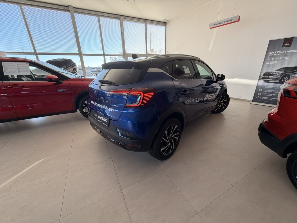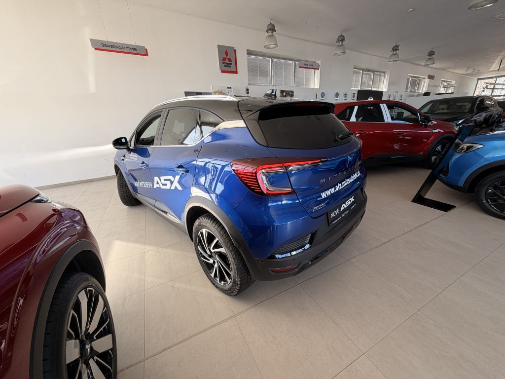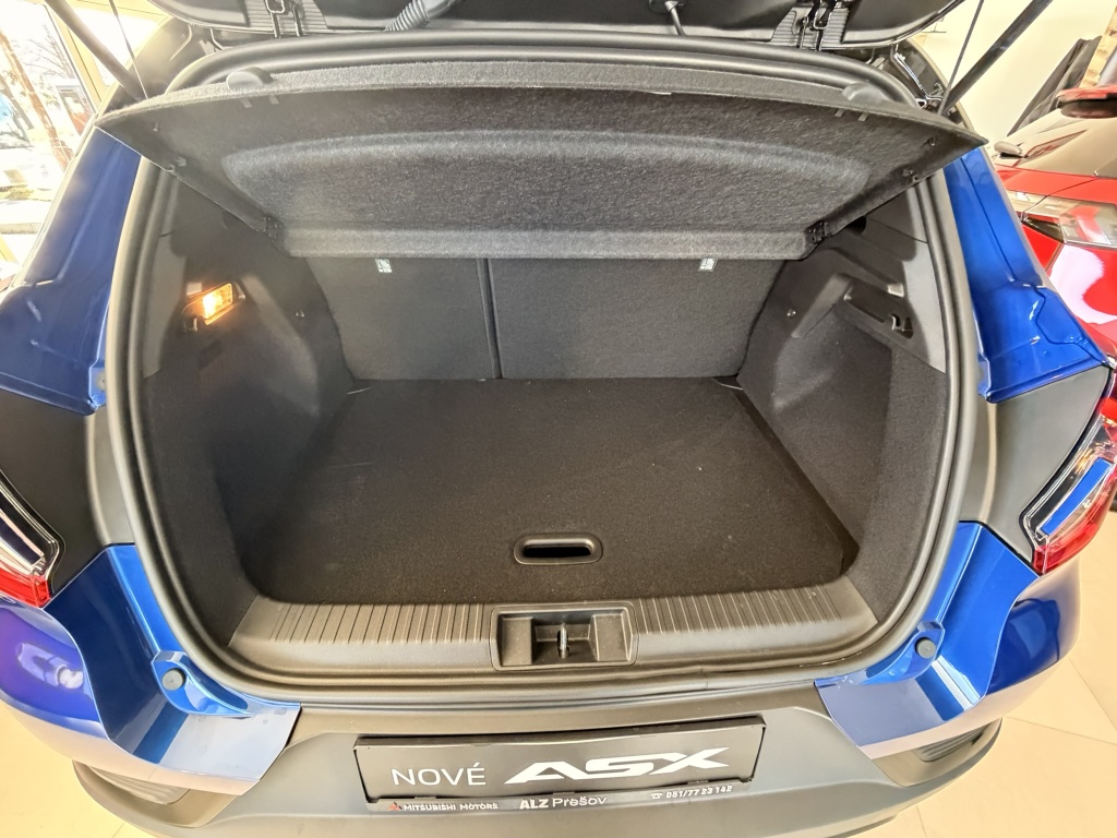 6 repreduktorov, Nabíjací vstup USB-C v zadnej časti stredovej konzoly (x2), Ovládanie audiosystému pod volantom, Plne digitálny prístrojový panel so 7" TFT displejom, Automatické aktualizácie audiosystému, Komunikácia s vozidlom a ovládanie niektorých jeho funkcií prostredníctvom mobilnej aplikácie My Mitsubishi, Bezdrôtové nabíjanie mobilného telefónu, Tlačidlo pre núdzové privolanie pomoci (E-Call), Dátový a nabíjací vstup USB-C na prednom paneli (x2), Audiosystém 10,4", podpora bezdrôtového Android Auto™ a CarPlay®, Bluetooth®, autorádio AM/FM/DAB (SDA), Aktívny systém pre núdzové udržanie v jazdnom pruhu (ELKA), Asistent rozjazdu do kopca (HSA), Výškovo nastaviteľné horné úchyty bezpečnostných pásov predných sedadiel (x2), Systém sledovania dopravnej situácie za vozidlom pri cúvaní (RCTA), Asistent pre bezpečné opustenie vozidla, 3-bodové bezpečnostné pásy ELR zadných sedadiel (x3) s predpínačom a obmedzovačom záťaže (x2), Núdzový brzdový asistent (EBA), Systém sledovania mŕtveho uhla (BSW), Systém rozpoznávania dopravných značiek upravujúcich rýchlosť (TSR) s inteligentným asistentom pre dodržanie povolenej rýchlosti, Aktívny systém udržiania v jazdnom pruhu (LKA), Detská poistka zámkov zadných dverí, Systém signalizácie núdzového brzdenia (ESS), Elektronický imobilizér, Čelné airbagy vodiča a spolujazdca (x2), spínač deaktivácie airbagu spolujazdca, Systém kontroly tlaku v pneumatikách (TPMS), Antiblokovací brzdový systém (ABS), Bočné airbagy vodiča a spolujazdca (x2), hlavové (okenné) airbagy vpredu a vzadu (x2), Systém pre analýzu pozornosti vodiča, Asistenčný systém MI-PILOT s aktívnym asistentom pre udržiavanie uprostred jazdného pruhu (LCA), Elektronický systém rozdelenia brzdného účinku (EBD), Systém predchádzania a zmierňovania následkov čelného nárazu s detekciou chodcov a cyklistov (FCM), Systém monitorovania a podpory udržiavania jazdného pruhu (LDW), Systém aktívneho riadenia stability (ASC), Multikolizná brzda, Lepiaca sada na opravu pneumatík, Systém elektronického riadenia trakcie (TCL), 3-bodové bezpečnostné pásy ELR predných sedadiel s predpínačom a obmedzovačom záťaže (x2), Technológia pohonu mild-hybrid 12V, Zatmavené zadné bočné okná a zatmavené zadné okno, Plastové lemy blatníkov (čierne), Zadný strešný spojler, Lesklo čierna mriežka chladiča s chrómovými akcentmi, Parkovacia kamera vzadu s projekciou na displej audiosystému, Kľučky dverí vo farbe karosérie, Parkovacie senzory vpredu, vzadu a na bočnej strane (x12), Spodný kryt predného nárazníka lesklo čierny, Disky kolies z ľahkých zliatin 18" čiernostrieborné + pneumatiky 215/55 R18, Ochranné spodné lemy dverí čierne, Strešná anténa typu Shark fin, Elektricky ovládané, vyhrievané a sklopné vonkajšie spätné zrkadlá v lesklej čiernej farbe s integrovanými indikátormi zmenu smeru jazdy, Tónované okná, predné sklo bezpečnostné laminované, zadné pevnostné temperované, Spodný kryt zadného nárazníka lesklo čierny, Lemy bočných okien strieborné / chrómované, B-stĺpik dverí v čiernej farbe, Predný a zadný nárazník vo farbe karosérie, Tmavosivé čalúnenie stropu, Ambientné podsvietenie interiéru, Kryt batožinového priestoru, Palubná doska s mäkčeným obložením, Držiaky nápojov vpredu v stredovej konzole (x2), Upozornenie na dodržiavanie bezpečného odstupu, Pozdĺžne strešné lyžiny strieborné, Posuvná stredová lakťová opierka vpredu s úložným priestorom, Vnútorné spätné zrkadlo s automatickým stmievaním, Chromované vnútorné kľučky dverí, Osvetlená odkladacia schránka na strane spolujazdca, Funkcia dvojitého dna v batožinovom priestore, Osvetlenie batožinového priestoru, Lesklo čierne dekory palubnej dosky, Syntetickou kožou obšitý 3ramenný multifunkčný volant, LED osvetlenie prednej časti interiéru, LED osvetlenie zadnej časti interiéru, Vyvýšená predná konzola, Priehradky s držiakmi nápojov vo výplniach predných a zadných dverí, Slnečná clona u vodiča a spolujazdca s LED osvetleným kozmetickým zrkadlom a držiakom lístkov, Čierne predné stĺpiky, Systém automatického vypínania a štartovania motoru (AS&G), Ovládacie páčky radenia pod volantom (Paddle shift), Centrálne zamykanie dverí s diaľkovým ovládaním a dvoma ovládačmi, Inteligentný systém bezkľúčového ovládania centrálneho zamykania s tlačidlom START/STOP, Výškovo a pozdĺžne nastaviteľný volant, Elektronický zámok veka piatych dverí, Komfortná funkcia ostrekovača predného skla, Funkcia obmedzovača rýchlosti s nastavením na volante, Elektrická parkovacia brzda (EPB) s funkciou Auto Hold, Vyhrievaný volant, Možnosť vlastného nastavenia jazdných režimov (My Sense), Palubný počítač, ukazovateľ vonkajšej teploty, Výdychy ventilácie pre zadných cestujúcich (pod prednými sedadlami av zadnej časti stredového tunela), Elektrické ovládanie predných a zadných okien s funkciou AUTO a ochranou proti privretiu, Dažďový senzor, Automatická klimatizácia s peľovým filtrom a filtrom s aktívnym uhlím, Adaptívny tempomat (ACC) s ovládaním na volante a funkciou Stop&Go, Tlačidlo ECO (asistent pre hospodárnu jazdu), Elektrická zásuvka 12V (v prednej časti stredovej konzoly) (x1), Elektrická zásuvka 12V (v zadnej časti stredového tunela) (x1), Výškovo nastaviteľné sedadlo vodiča, Výškovo nastaviteľné opierky hlavy na predných sedadlách (x2), Výškovo nastaviteľné opierky hlavy na zadných sedadlách (x3), Vrecká na zadnej strane operadla vodiča a spolujezdce, Výškovo nastaviteľné sedadlo spolujazdca, Kotviace body pre ISOFIX (x1 na mieste spolujazdca, x2 na zadných bočných sedadlách), Látkové čalúnenie sedadiel čierne / sivé, Vyhrievané predné sedadlá (2 stupne teploty